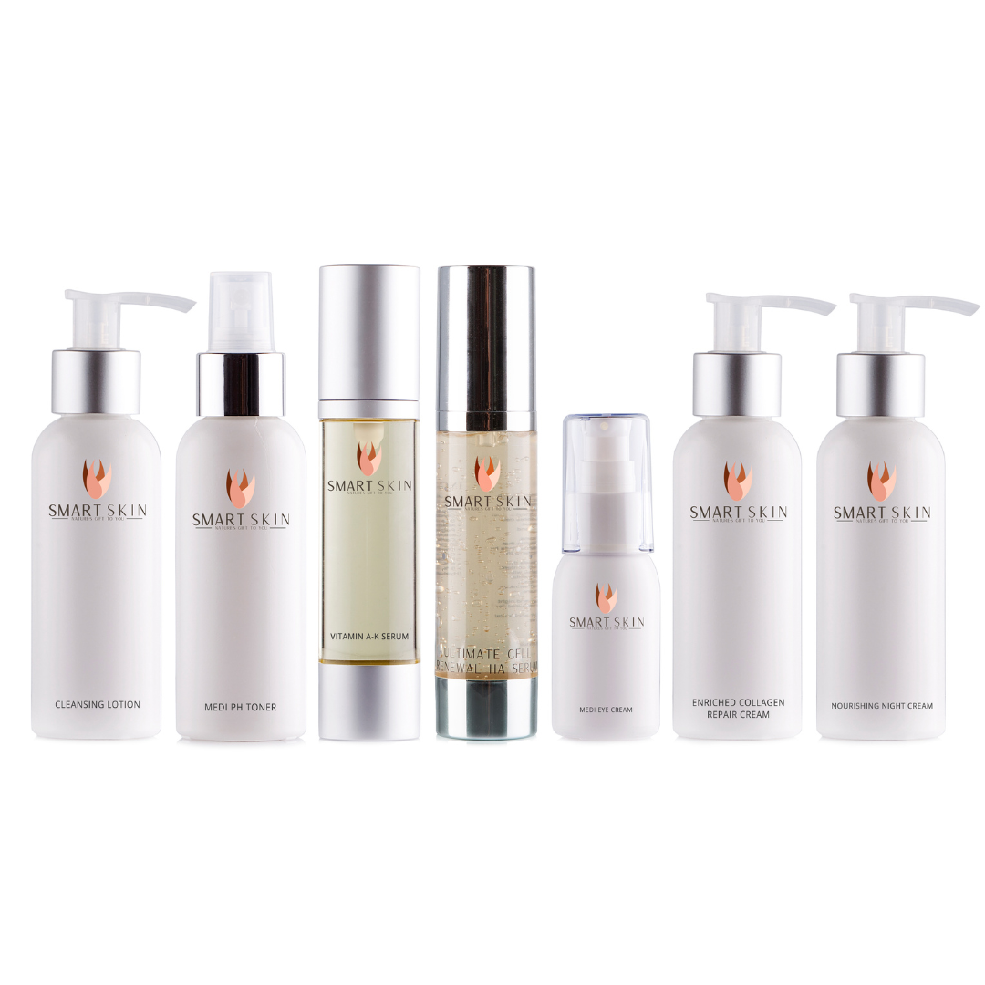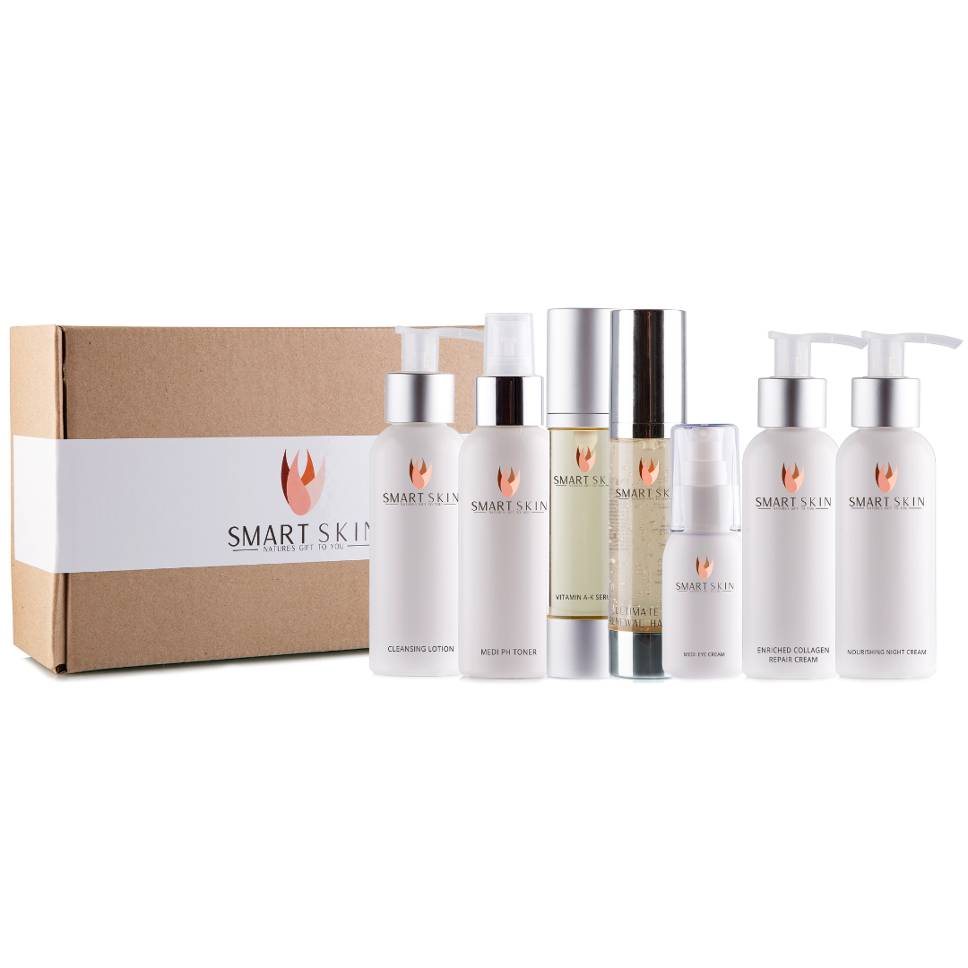 Introducing our ultimate repair and restore skincare bundle! This bundle is Formulated with powerful ingredients to rejuvenate tired skin, diminishes signs of aging, and promotes a glowing complexion. Experience the power of Smart Skin as they work together to deeply hydrate, repair, and revitalize your skin.