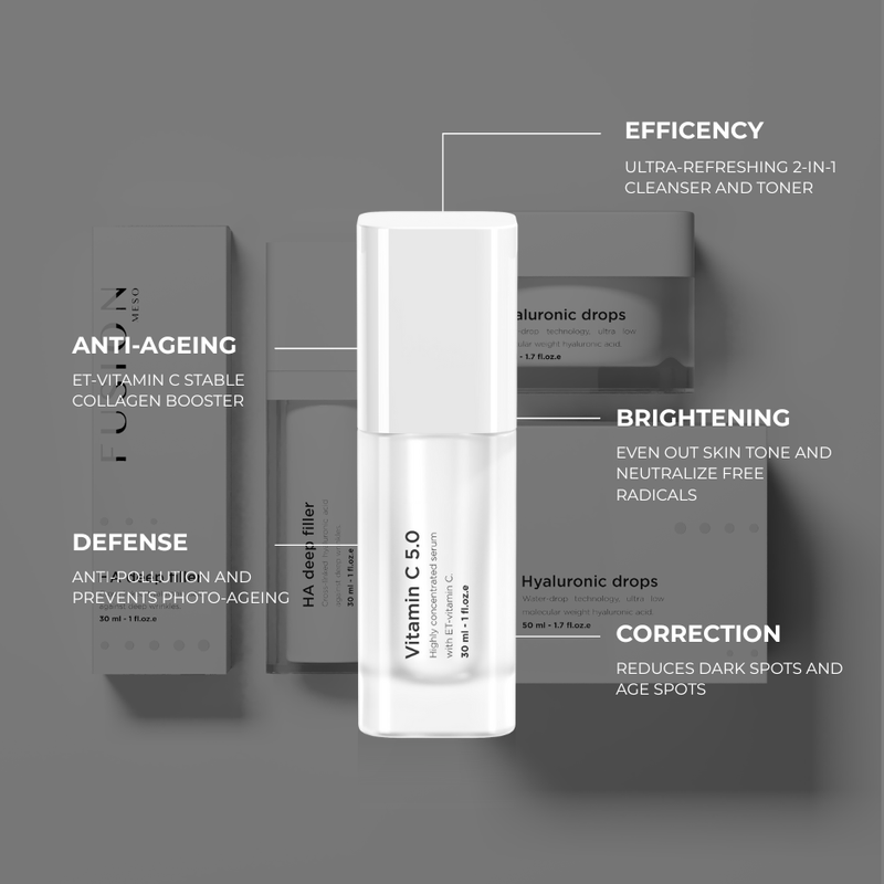 Reflecting Fusion Meso’s commitment to providing highly effective yet non-irritating products , the Vitamin C 5.0 is suitable for all skin types. It is recommended for use at night, where it is to be applied to a thoroughly cleansed and dry face. By consistently incorporating this booster into a home regimen, users can leverage its concentrated, science-backed formulation to target signs of aging and achieve a more youthful, radiant, and uniform complexion. Fusion Meso’s philosophy centres on using only scientifically proven active ingredients in appropriate concentrations , ensuring this booster delivers guaranteed results.